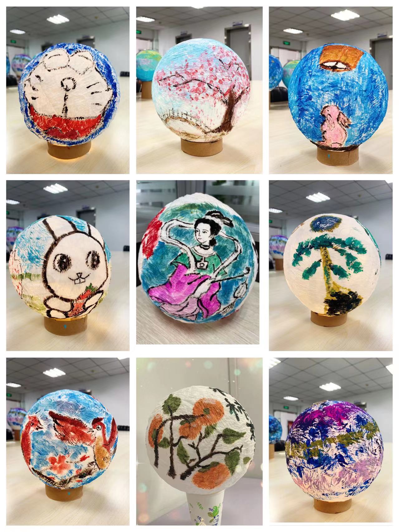 9月9日jinnian金年会员工手绘“月球”活动,每人都是绘画天才,简单的纸做圆球,搭配彩色颜料,成为一个个精美的艺术作品。
